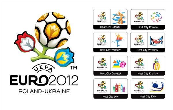 距离波兰和乌克兰联合举办的2012欧洲杯欧洲杯开幕只有几十天,国外的设计博客DesignTagebuch整理了两国主办城市的官方欧洲杯组合标志以及各城市的体育场图标设计,详情请看下面。